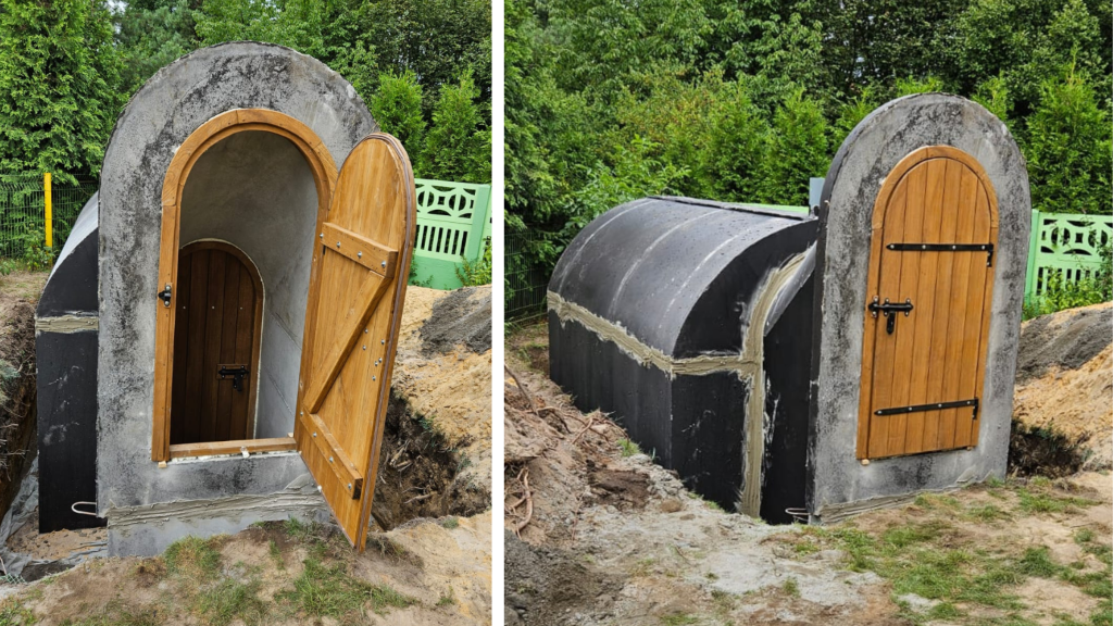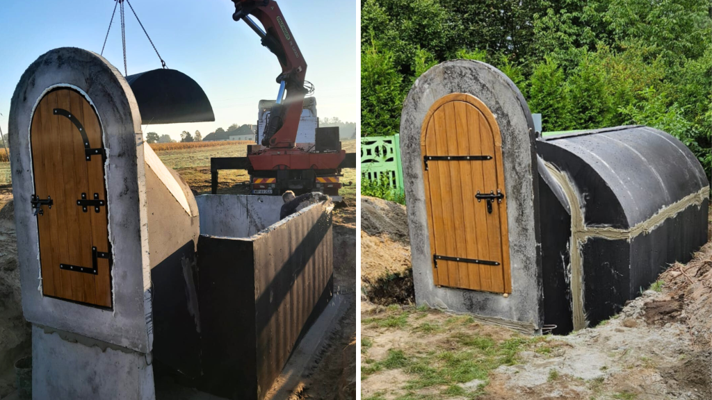 Ziemiankę z betonu możesz wkopać nawet na niewielkiej działce, gdyż do jej ulokowania wystarczy wykonanie wykopu minikoparką. Dodatkowo wejście do piwniczki znajduje się nad gruntem, dlatego wykop nie musi być bardzo głęboki, ani przystosowany do zamontowania schodów lub drabin. Tym samym piwniczka betonowa do ogrodu to rozwiązanie praktyczne i nowoczesne.